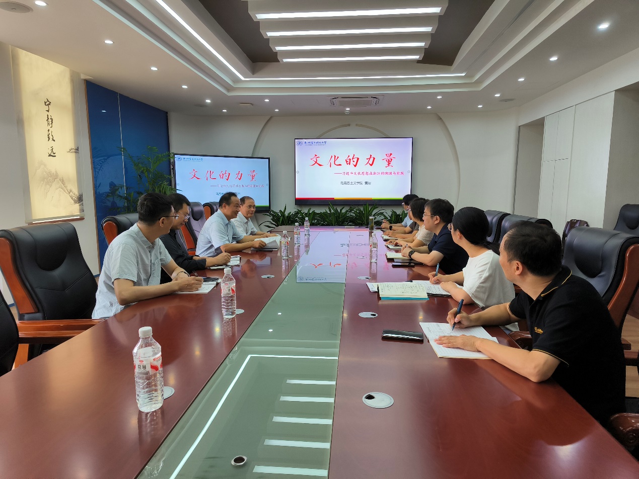 浙江省思政课教学名师、学校思想政治教育研究所所长、学校马克思主义学院副院长黄岩教授作了“文化的力量——习近平文化思想在浙江的溯源与实践”领学。