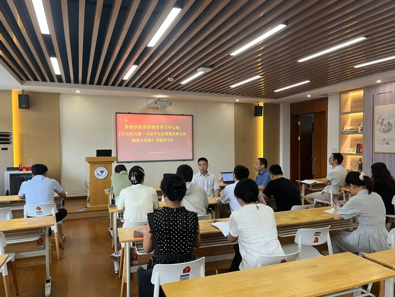 9月29日,管理学院党委理论学习中心组召开扩大会议,专题学习《文化的力量——习近平文化思想在浙江的溯源与实践》内容。学院党委书记李国冰主持会议并领学,学院理论中心组成员、各支部书记参加会议。