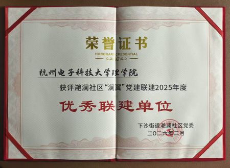 近日,下沙街道滟澜社区党委召开“澜翼”党建联建表彰会,杭州电子科技大学理学院凭借2025年在党建联建与服务实践中的扎实举措、显著成效,获评“澜翼”党建联建2025年度优秀联建单位。